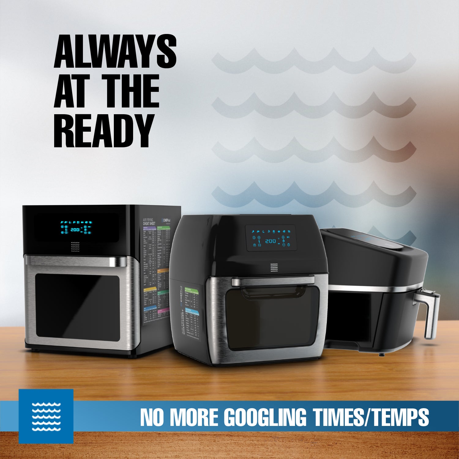 The cooking time cheat sheet for your favorite air frying device will make sure you never have to waste precious minutes guessing at what should go into it. With two different size options, this handy little guide offers convenience and accuracy when preparing foods such as chicken wings or French fries! An Easy-to-Read Font is printed on small, magnetized sheet. This makes it easier than ever before to reference your favorite frozen appetizer or side dish recipes in one place without always having multiple books handy