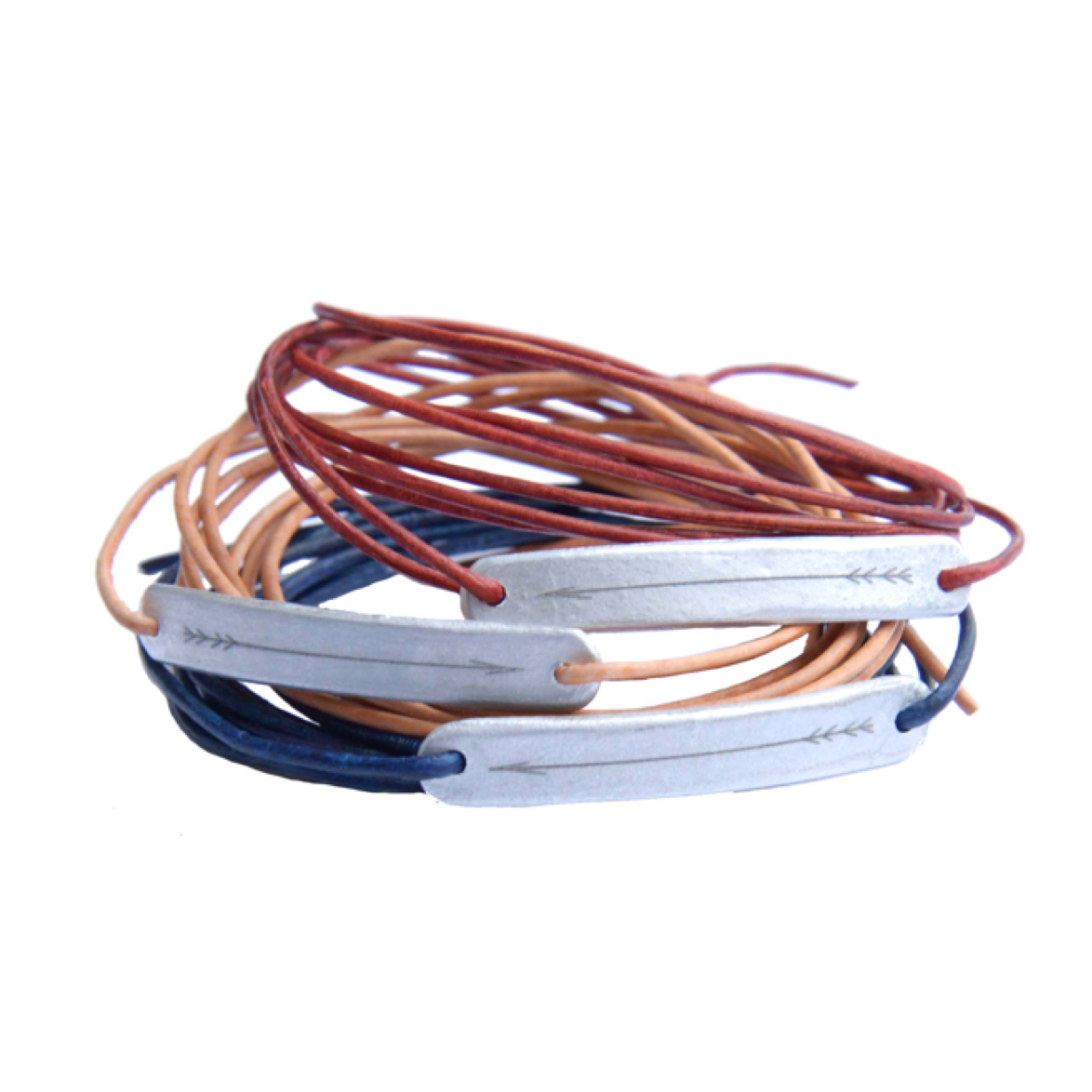 Each wrap bracelet is presented on a card and closed with a slip knot and an oxidized sterling silver clasp. S old as a single bracelet or as a bundle of five - buy four and get the fifth with compliments when you p ut five wraps in your cart and enter code SHAREARROW .